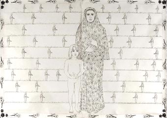 In “The Soldiers are Coming” piece photographed above and exhibited at Vagina Festival, Vahdat depicts the threat of violence experienced by the women of Iran. Although Vahdat’s focus on terrorized women lies with her experience and connection to Iran, she is quick to note that, “Violence against women is a worldwide phenomenon, not limited to country, type of government, ethnicity, race religion or class.” “The Soldiers are Coming” is only one piece of a series from “What will Befall Her?” that explores Vahdat’s interest in addressing the other forms of gender oppression women face around the world, which includes but is not limited to; the killing of female babies, bride burning, “honor killing”, rape camps, female genital mutilation, sexual trafficking in women and children and incest. With women like Vahdat on the forefront encouraging people to have conversations about the tortures women face on a daily basis, we are well on our way to free other women.